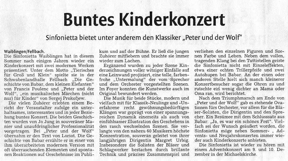 Im Nächsten Absatz der WKZ-Bericht über das Konzert in Waiblingen: